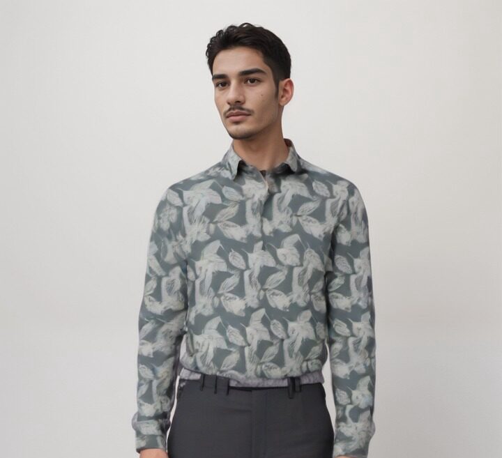 High quality grey printed shirt with waffle texture ,Elegant print with textured look